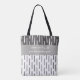 Create a custom quote tote bag add your own quote on bold grey and white original abstract pattern design in a modern chic all over print. Art copyright Ann Powell all rights reserved.