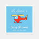 Personalised baby shower napkins with cute toy helicopter. Colourful plane design with date of birth or celebration. Adorable kids aviation theme illustration. Create your own fancy babyshower napkins with customisable text. In pastel light pink purple yellow blue grey etc. Suitable for boys and girls. Cute idea for new mum, mother to be. Also fun for childrens 1st Birthday party. Elegant stylish typography.