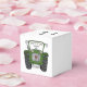A tractor country farm wedding favour box which can be personalised. The bunting in the tractor is in a subtle cream and white.
