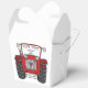 A tractor country farm wedding favour box which can be personalised. The bunting in the tractor is in a subtle cream and white.