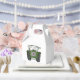 A tractor country farm wedding favour box which can be personalised. The bunting in the tractor is in a subtle cream and white.