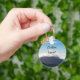 A custom travel keychain with the photo of an aeroplane taking off from Puerto Plata in the Dominican Republic.