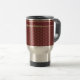 A stylish, customisable stainless steel Travel Mug, with a formalised floral pattern in beige on a rich burgundy background. You can add your own text or name to the top band or just leave it plain.