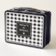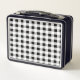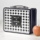 Cute Trendy Black & White Chequered Pattern Metal Lunch Box Design.