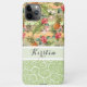Contemporary coral red, pink, orange, yellow, and green tropical floral, pineapple, and stripes pattern. With room to customise or personalise with a name, monogram, or initials of your choice. Beautiful, modern, and cool cover for the trend-savvy and art-loving hip trendsetter, artsy motif lover who wants to protect their phone from dust and dirt, wear and tear. This design is available Apple iPhone 6, 7, 8, 10 or X, XR, XS, 11, 12, 13 Mini, 14, 15 Plus, and Pro Max cellphone cases. Show off your style, look fashionable trendy, and feel stylish with a unique design on a mobile device accessory of your choice.