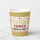 The Golden Age, 2025 Trump-Vance America First. Business or personal party cups with ample room to customise on back. Easily change or remove text using the Template provided. These 8oz. cold or warm beverage paper cups are top quality; 12oz. capacity is also available . Option of a lid for an upcharge. See "About This Product" at side for more information. Printed in USA. Collectable.
