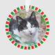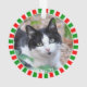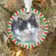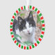 Custom tuxedo cat photo and green red frame Ornament. Text can be personalised.