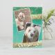 Create a personalised holiday greeting with this modern two-photo Christmas card design. Featuring a bold green background, gold accents, and playful angled photo frames, it’s perfect for showcasing your pet, family, or favourite memories. Easy to customise and ideal for sharing warm wishes in style.