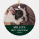 Custom Two Sided Green First Christmas Puppy Photo Ceramic Tree Decoration