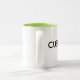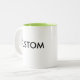 Custom Two-Tone 11oz Ceramic Mug - LIME GREEN Inside, 4.8” high x 3.2” diameter. 11 oz or 15 oz options. Microwave and dishwasher safe. FDA food and beverage safety approved. Black, lime, maroon, navy blue, orange, pink, red, yellow, hunter green, and light blue colour options.