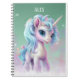Cute unicorn in a green sky, clouds and stars Notebook with Customisable name. Give this unicorn Notebook to a unicorn lover. Put her name on the cover and make this book personal and hers. Comes in different background Colours for your taste.