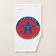 Highlight your favourite team name with this custom sports themed hand towel design featuring a star place inside dual circles with an initial in the centre. This team towel can be personalised with any fan or sports team name. This cool sports themed team name hand towel makes a great gift for fans, players, and team supporters alike