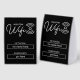 This modern and stylish paper tent sign boasts a contemporary minimalist design, displaying login instructions in sophisticated white text on a black background. It provides personalization options to tailor your message. The sign presents a distinct and inviting approach for conveying internet login information to guests at your vacation rental or to colleagues in an office or desk workspace.