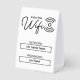 This modern and stylish paper tent sign boasts a contemporary minimalist design, displaying login instructions in sophisticated black text on a white background. It provides personalization options to tailor your message. The sign presents a distinct and inviting approach for conveying internet login information to guests at your vacation rental or to colleagues in an office or desk workspace.