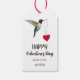 Cute custom Valentine Day's tag with a ruby-throated hummingbird carrying a heart.