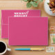 These vibrant pink envelopes feature the word "Merry & Bright" in white over a vibrant fuchsia pink background. The envelope opens to reveal a unique watercolor Christmas pattern. Use the template fields to add your custom return address. A unique choice for the holidays. To see the matching suite visit www.zazzle.com/dotellabelle
