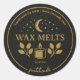 Add a touch of old-world charm to your handmade wax melts with this elegant apothecary-style label design. Featuring classic gold lettering on a black circular background, this label includes celestial details like a crescent moon and stars, botanical elements, and a minimalist candle icon. Personalised with your brand and a website, it’s perfect for small businesses or artisan makers. The label highlights the customisable calming patchouli scent and product weight (Net Wt 3 oz), giving your packaging a refined and professional look.