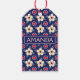 Add a charming personal touch to your presents with this customisable floral gift tag featuring a vintage-inspired pattern in navy, cream, and red. The design includes delicate cream blossoms, red berries, and a bold nameplate with space for any name. Perfect for birthdays, holidays, bridal showers, or special occasions. Easily edit the name to create unique tags for each recipient or event.