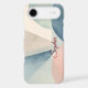 Protect your phone with artistic elegance using this vintage-inspired geometric case in soft pastel tones (pale blue, blush pink, and beige). The design is precisely centered and offers the option to add a personalized name in a graceful curved font in your chosen color, giving the case a refined and custom touch. Compatible with iPhone 17 and other popular models, it provides everyday protection against scratches and bumps while ensuring easy access to ports and camera. Perfect as a personalized gift or to style your device with a feminine retro-chic flair.