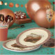 Main colours of this beautiful retro design: peach, beige and ivory.