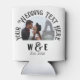 Custom printed, personalised traditional vintage font template CAN COOLER SLEEVE WEDDING FAVORS. Template personalised on front and back of cooler sleeve. UPPER TEXT - main wedding statement. Replace IMAGE with your wedding couple, engagement, wedding photo. LOWER TEXT - The monogram template for the initials of the bride and groom with an ampersand symbol to compliment the upper text. The year date line can be changed to the exact wedding date, such as 05.08.20XX, great for use as a Save the Date favour. Available on can cooler sleeves, bottle cooler sleeves and seltzer can cooler sleeves, or transfer template to any product. BIG MULTIPLE PURCHASE DISCOUNTS ON THIS PRODUCT. Design, make create your own customisable wedding favours (favours) from a template. Personalise unique favours for your wedding guests with your wedding photo, monogram, image upload, and fully customise your wedding text with hundreds of modern, script, calligraphy, elegant, retro, vintage, traditional, and other font style options. These customised wedding favours also make top groomsmen and bridesmaid gifts for your bachelor or bachelorette party and your bridal shower and as gifts for the wedding couple.