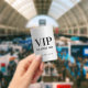 Simple Template for VIP All Access Custom Concert Badge. Design features classic black typography on a faux silver background. Replace with your concert name, location and date. Easy to customise. Get yours today!