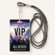 Perfect for concerts and large events, this customizable badge features a background of concertgoers and lights with white text overlays. Customize for VIPs, staff, press or other uses, with three lines of text on the front. Add additional event information to the back of the badge in white lettering on black.