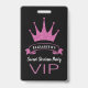 Custom VIP Pink Glitter Girly Sweet Sixteen ID Badge