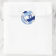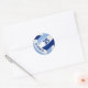 These custom volleyball themed round stickers for girls or boys feature the realistic image of a volleyball that has light & dark blue panels upon which you can customise the player's name & jersey number in a varsity letter style font - by katz_d_zynes