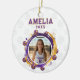 Celebrate your favorite volleyball player with this unique personalized photo ornament! Featuring a vibrant purple and gold design, this custom keepsake allows you to proudly display a photo of your athlete, along with their name and a year. Perfect for commemorating a successful season, or a special Christmas ornament. It's a wonderful way to capture memories and show team spirit for years to come.