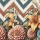 The wallpaper design features a stylish Chevron pattern as the backdrop, creating a dynamic and modern feel. Overlaid on this pattern are beautifully detailed flowers, including vibrant zinnias, lush roses, and delicate vanilla blossoms. The zinnias add bursts of colour with their bold, layered petals, while the roses bring a touch of classic elegance with their full blooms. The vanilla flowers introduce a subtle, creamy charm, complementing the more vibrant tones. The combination of the Chevron pattern with these attractive flowers creates a striking balance of contemporary style and natural beauty, making the wallpaper both eye-catching and sophisticated.