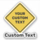 Diamond shaped yellow warning sign. Custom text.