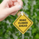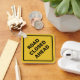 Diamond shaped yellow warning sign. Custom text on both sides.