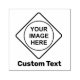 Diamond shaped yellow warning sign. Custom image. Custom text.
