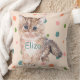 Custom watercolor cat polka dots nursery pink kids throw pillow.