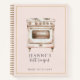 A personalized whimsical watercolor kitchen oven recipes notebook and a scrumptious looking cake on the back of the notebook. The pages are ready for your culinary journey to list your recipe instructions. A perfect gift for the avid baker. It is also offered with a hard cover.