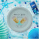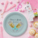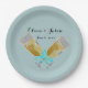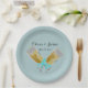 Add fun to a party for the engaged couple, a bridal shower, or anniversary parties with pretty, personalised paper plates. Shown here in a pastel teal background to match the ribbon on the champagne glass.