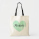 Personalised wedding favour tote bag with mint green vintage heart. Create your own cute bags for guests. Custom brides crew heart tote bags for wedding party. Personalizable with name. Cute favour or gift idea for bride to be and brides entourage. Make one for bridesmaids, maid of honour, mother of the bride, flower girl, mum, sister, friends etc. Mint team bride logo design for rustic wedding, elegant bridal shower, bachelorette, girls night out / weekend. Stylish script typography text.