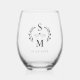 Custom Wedding Modern Monogram Wreath Crest Grey Stemless Wine Glass