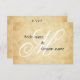 An elegant wedding monogram design in black and white on a vintage style background image design to look similar to old paper or vintage parchment, a background image in yellowy beige and sandy fawn colours with a mottled look to the pattern. This has template spaces for the bride and groom names and a nice swirly script style custom initial letter in white. A nice vintage style themed design with a stylish old fashioned look.