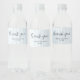 Our custom blue and white stripe wedding name thank you water bottle labels make the perfect addition to your party or wedding favours.