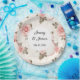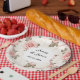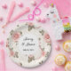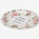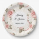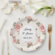 This custom wedding paper plate is shown in a lovely pink rose print.