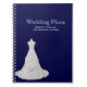 Elegant spiral notebook done in blue and white. Lovely photo of a white bridal gown against a blue background. White text is fully customisable. Personalise the text to read what you want. Perfect for the bride's hectic planning.