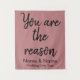 custom wedding backdrop for reception, wedding reception calligraphy back drop, wedding photo booth tapestry backdrop, wedding reception banner, you are the reason, custom wedding backdrop for ceremony, wedding photobooth rustic wedding decor, engagement party bridal shower banner, wedding head table couple backdrop, personalised names wedding back drop