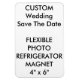 Wedding Custom Save The Date Photo Magnet, Flexible Refrigerator (Fridge) Magnet, 4" x 6". Horizontal or vertical design, perfect for refrigerators or any magnetic surface (also sticks to curved surfaces), vinyl laminated for photos, images, text, or designs, high quality vibrantly printed in full colour, stain and water resistant.