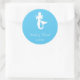 This round sticker is shown in a blue colour with a mermaid print.