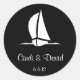 Round sticker shown in black/white colours with a sailboat print. Customise this sticker by changing the text to your name and date and even choose and change to your favourite colours.