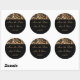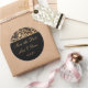 This round wedding sticker Save the Date is shown in a black and safari leopard print.