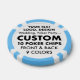 10 x Custom personalised WEDDING Casino Poker Chips, or tokens for drinks & favours. Choose from 9 colours of classic stripe on the poker chip edge: Red, Blue, Green, Black, Yellow, Pink, Orange, Light Blue and Grey. Customise the front, back and edge of your poker chips with a photo, picture, image or design, and add text.