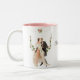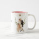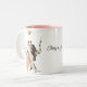 This custom name wedding coffee mug is shown with sample names and a bride and groom art print.